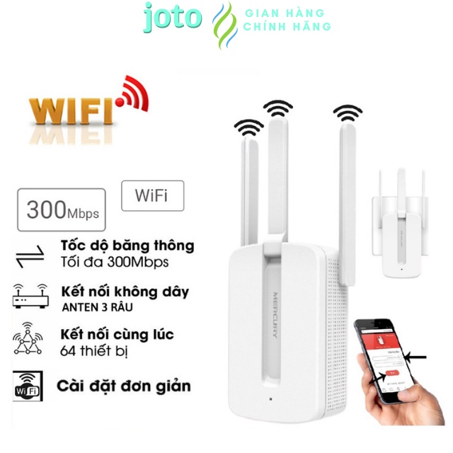 kích sóng wifi,Bộ Kích Sóng Wifi ,Bộ Kích Sóng Wifi Mercury, Repeater MW310RE 3 Anten Cực Mạnh ,JOTO
