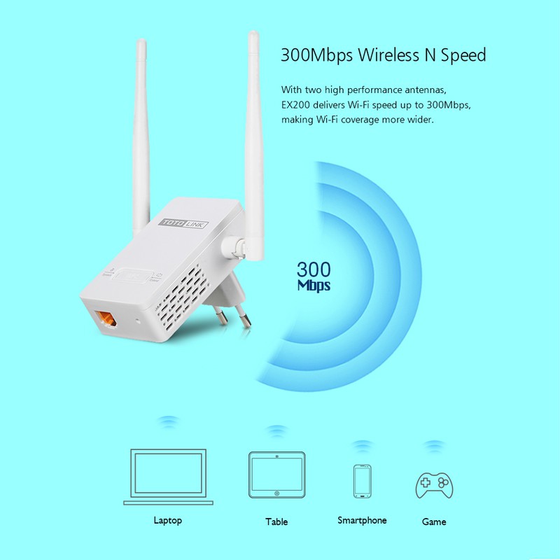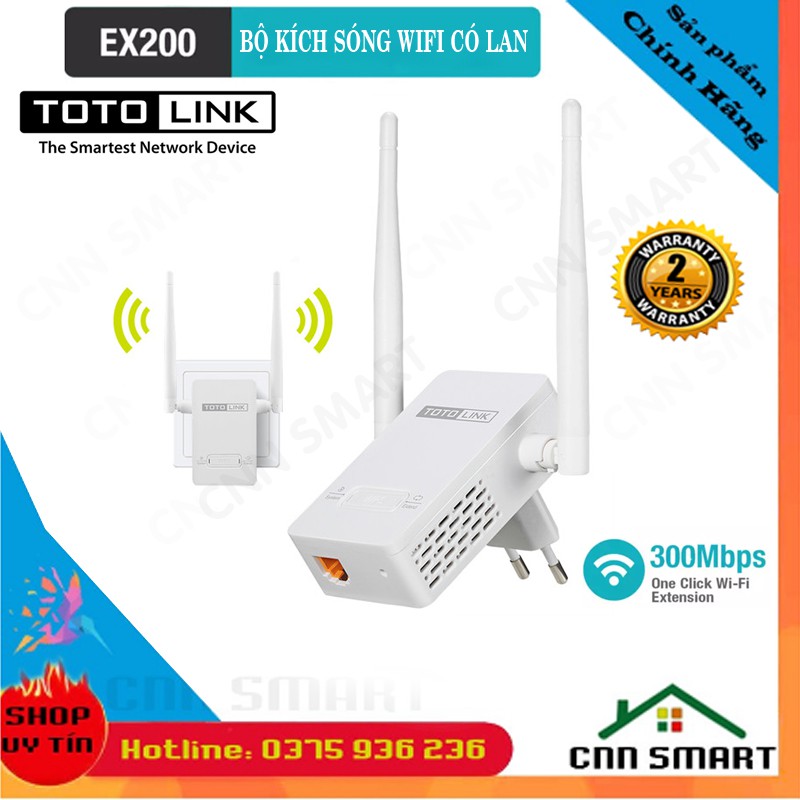 ✅Bộ Kích Sóng Wifi Kem Repeater Chuẩn N 300Mb TOTOLINK EX200 Có LAN: