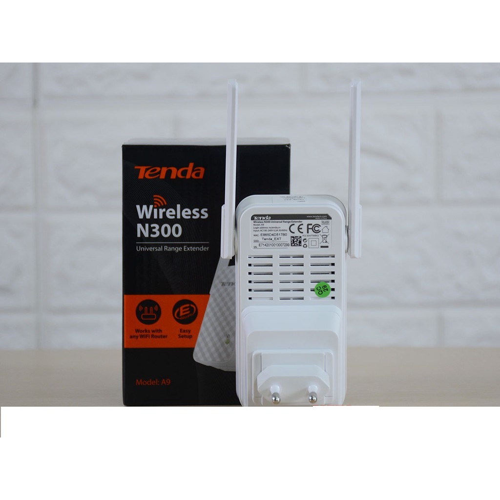 Bộ kích sóng này được trang bị 2 ăng ten 3dBi tăng tín hiệu để mở rộng vùng phủ sóng wifi lên đến hơn 200m2, Tenda A9 có thể phát wifi theo cả nhiều ngang và chiều dọc, dùng cho nhà nhiều tầng mà vẫn đảm bảo được nguồn sóng mạnh mẽ đáp ứng nhu cầu sử dụng của nhiều người.Tốc độ300Mbps