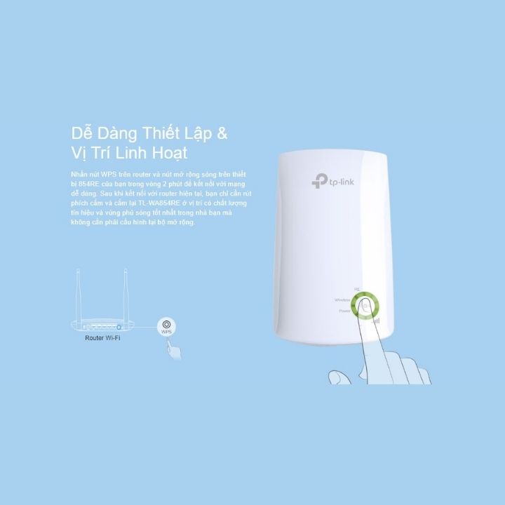 BỘ KÍCH SÓNG WIFI không dây TP-Link TL-WA854RE repeater chuẩn N 300Mbps bảo hành 24 thángSử dụng Wifi là nhu cầu thiết yếu khá thông dụng và phổ biến hiện nay cho các thiết bị thông minh. Chúng ta có thể bắt gặp Wifi ở bất cứ đâu, ở gia đình, văn phòng, trường học, quán cà phê hay thậm chí cả ở ngoài đường. Nhưng hẳn không ít người trong chúng ta gặp phải tình trạng sóng Wifi chập chờn, tốc độ chậm mặc dù đã nâng cấp đường truyền tốt hơn. Và nguyên nhân gây ra tình trạng đó là do bạn đặt modem chính ở quá xa, không gian dùng wifi quá rộng dẫn đến khả năng phủ sóng không hiệu quả. Để khắc phục tình trạng đó, sử dụng BỘ KÍCH SÓNG WIFI là một lựa chọn tối ưu lúc này.