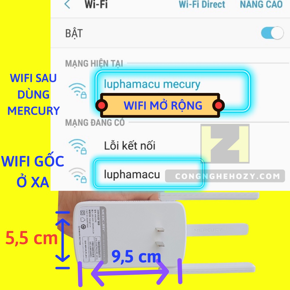 - Bộ kích sóng wifi Mercury là 1 thiết bị cực kỳ hữu ích, chúng ta có thể dùng để tiếp sóng 1 wifi sẵn có để phủ rộng hơn vùng sử dụng wifi trong gia đình. Với thiết kế nhỏ gọn, bộ kích sóng Wifi Mercury không cần cài đặt app, bạn đã có thể trực tiếp điều khiển, setup mạng wifi cho nó, rất tiện lợi. ( Có hướng dẫn chi tiết , hoặc liên hệ shop hướng dẫn trực tiếp )