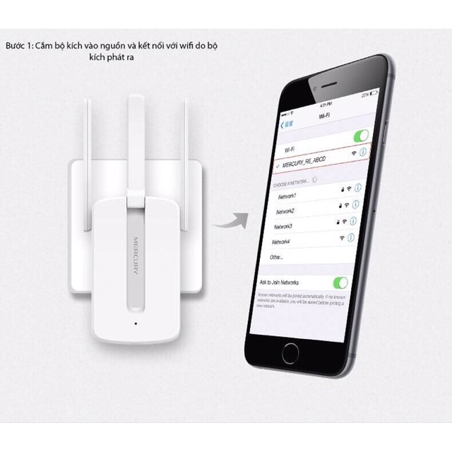 Kích sóng wifi mercury MW310RE 300Mbps cực mạnh