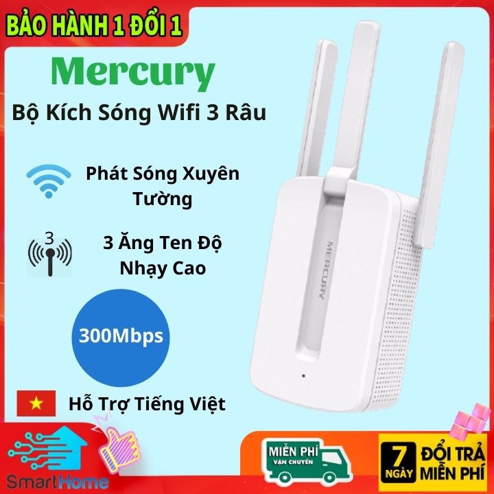 Bộ Kích Sóng Wifi Mercury Repeater MW310RE 3 Anten Cực Mạnh 300Mbps