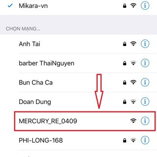 Bước 2: Dùng điện thoại bắt đến wifi tên Mercury -RE-D0..