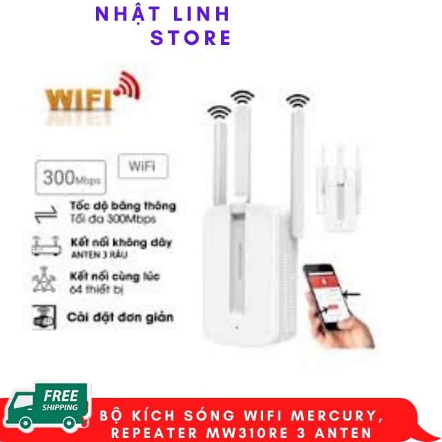 Bộ Kích Sóng Wifi Mercury, Repeater MW310RE 3 Anten Cực Mạnh☀KÍCH SÓNG WIFI CHO NHÀ NHIỀU TẦNG
