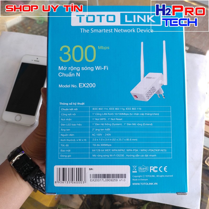 Bộ Kích Sóng Wifi #Repeater 300Mbps #Totolink #EX200 - Hàng Chính HãngBăng tần 2.4~2.4835GHz