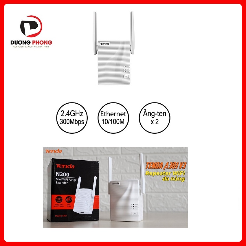 Bộ Kích Sóng Wifi Repeater 300Mbps Tenda A301 – BH36T Chính Hãng