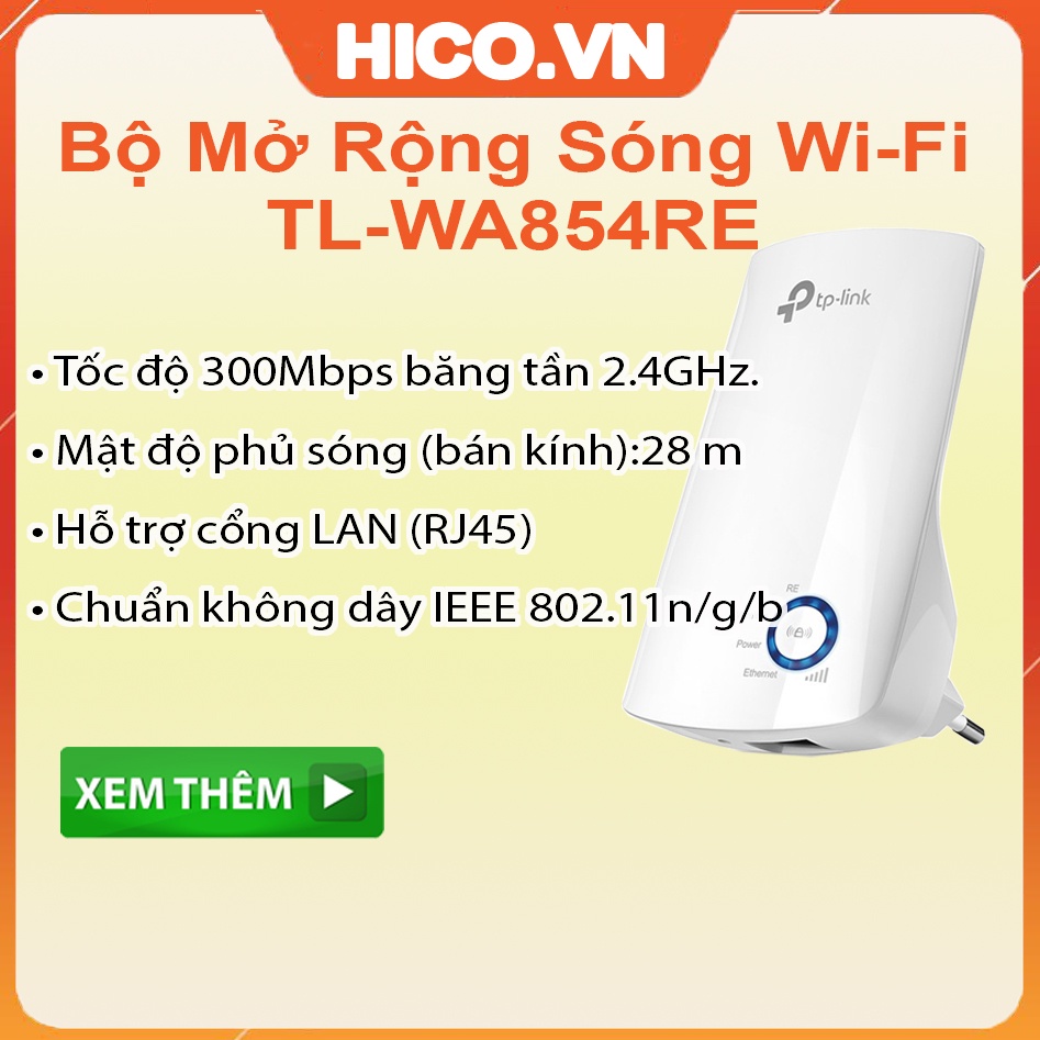 Máy tính & Laptop > Thiết Bị Mạng > Bộ Kích Wifi || Bộ Kích Sóng Wifi Repeater 300Mbps TP-Link TL-WA854RE - Hàng Chính HãngCòn hàng