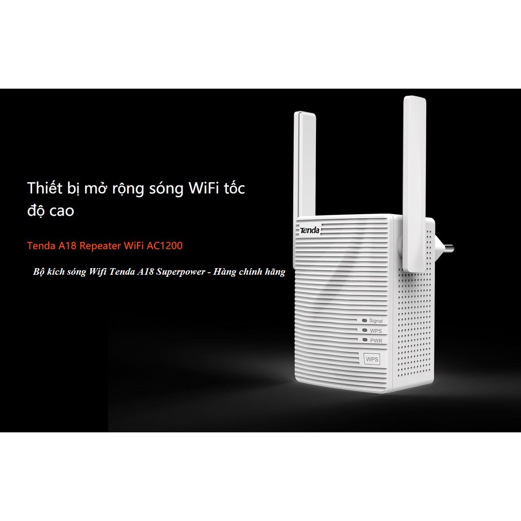 Tenda A18 là thiết bị mở rộng sóng WiFi 2 băng tần chuẩn AC1200Cung cấp tốc độ 867Mbps ở băng tần 5GHz và 300Mbps ở băng tần 2.4GHz