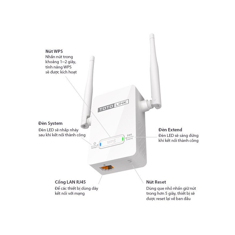 Khi sử dụng Totolink EX200, bạn sẽ yên tâm với kết nối WPS có chức năng đảm bảo sự an toàn, hiệu suất hoạt động của tốc độ sóng tránh được sự xâm nhập trái phép.