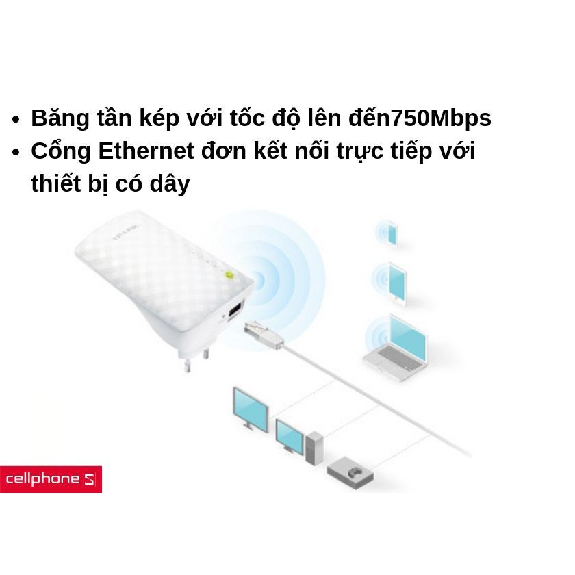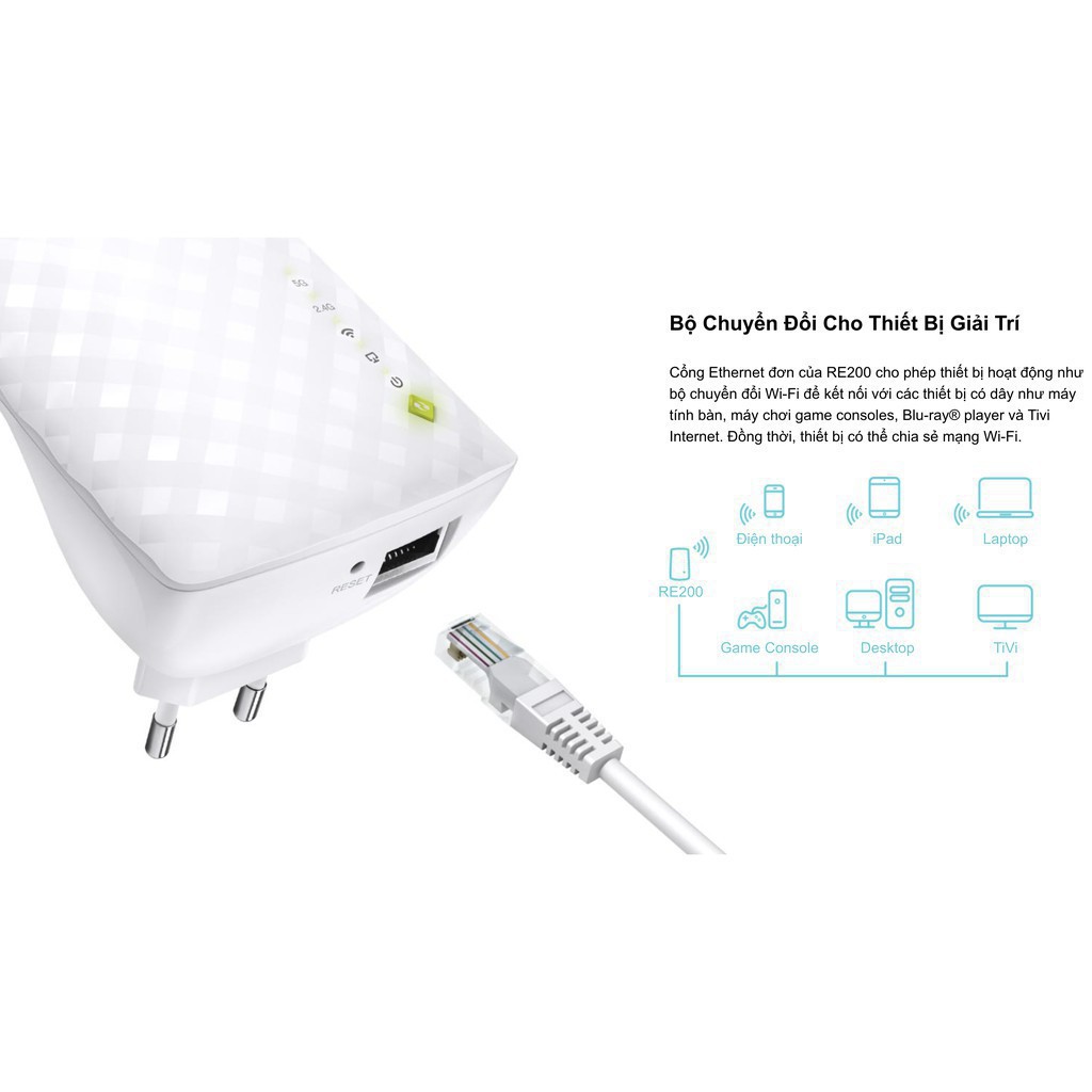Bộ kích sóng wifi Tplink RE200 băng tần kép AC750 giúp tăng tốc độ kết nối. Chính hãng, BH 24 tháng