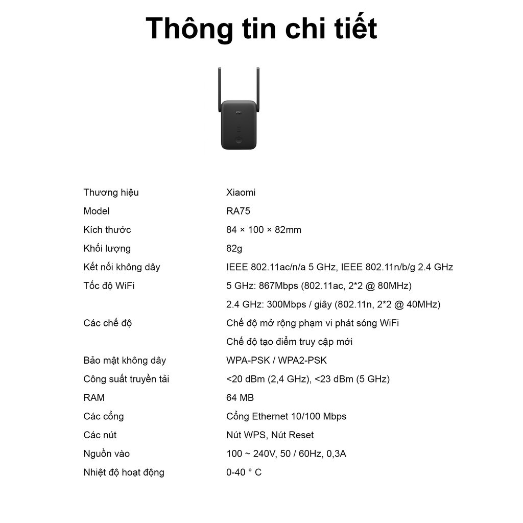 💥 Thông số chi tiết Mi Wifi Range Extender AC120