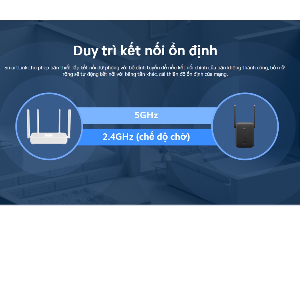 - Duy trì kết nối ổn địnhSmartLink cho phép bạn thiết lập kết nối dự phòng với bộ định tuyến để nếu kết nối chính của bạn không thành công, bộ mở rộng sẽ tự động kết nối với băng tần khác, cải thiện độ ổn định của mạng.