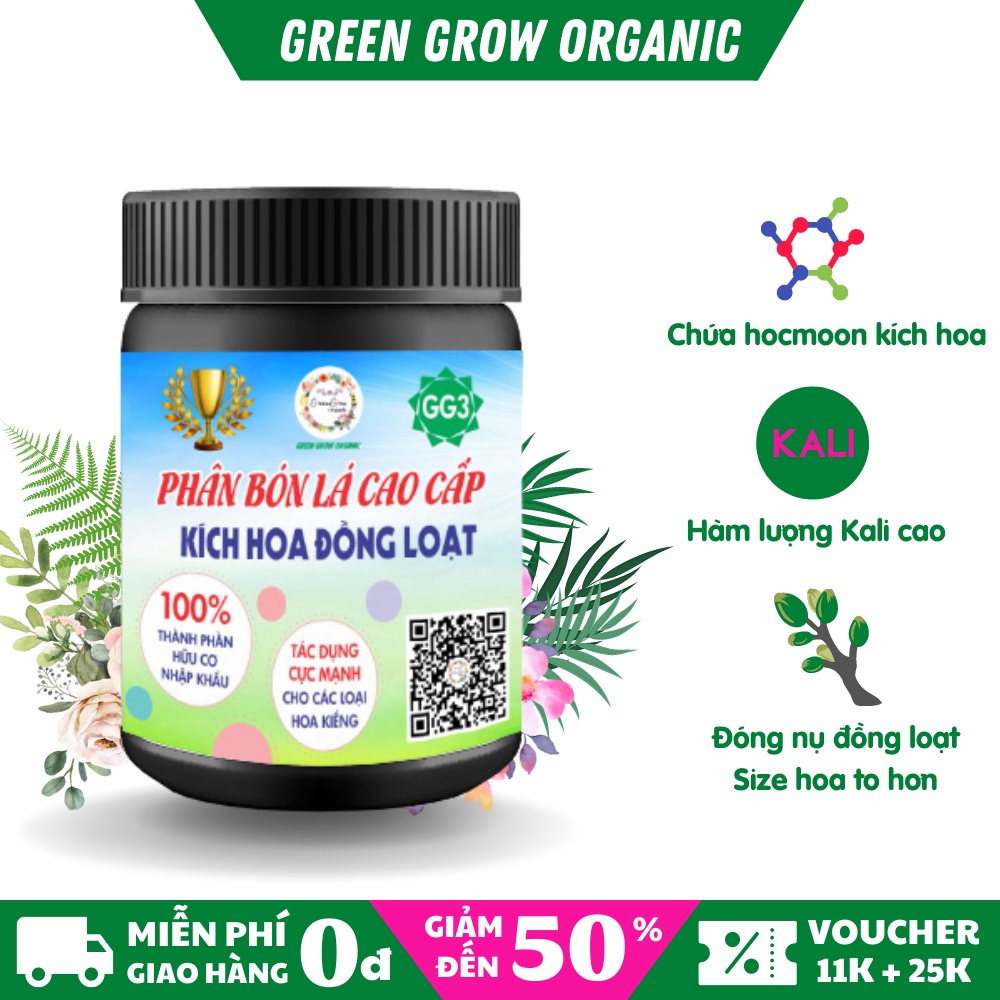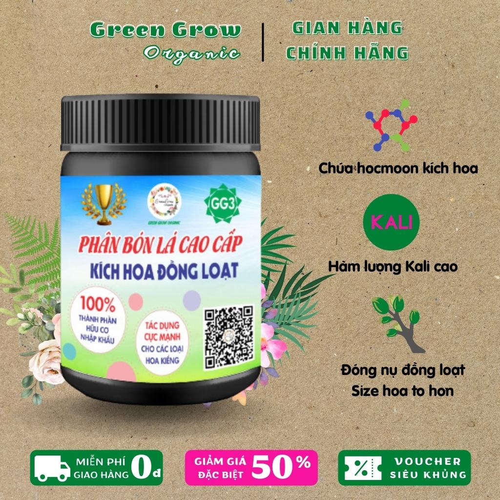 Kích thích ra hoa đồng loạt Green Grow Organic - Phân bón lá kích hoa đồng loạt cho hoa hồng, hoa giấy, hoa mai MS101Phân bón lá kích thích ra hoa GG3 của Green Grow kích thích hoa hồng ra hoa vượt trội. Sản phẩm này không chỉ dùng ra hoa mà còn giúp cây ăn quả và rau xanh nhanh nở rộ.