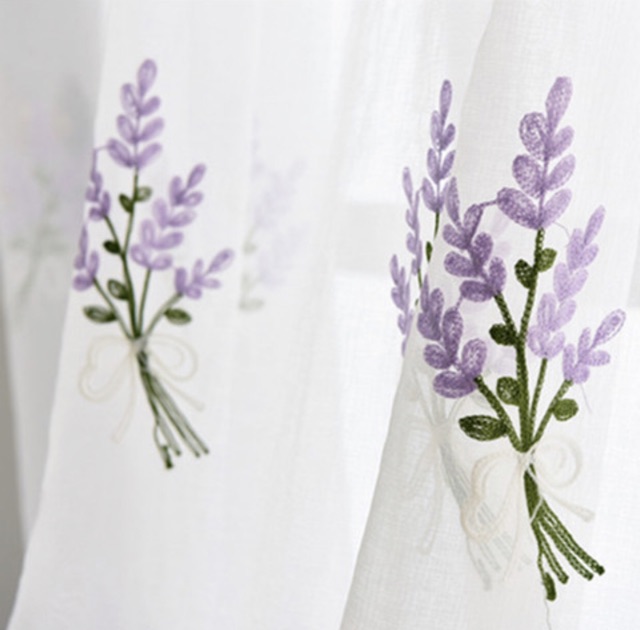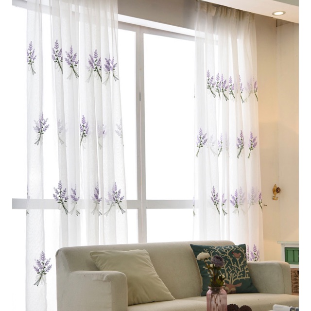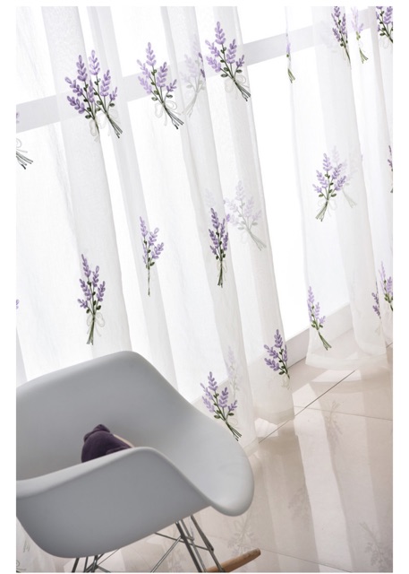 Nhà cửa & Đời sống > Trang trí nhà cửa > Rèm cửa, màn che || { Nhiều Kích Thước } Rèm Voan Thêu Hoa Lavender - Rèm Voan Thêu Hoa Oải HươngCòn hàng