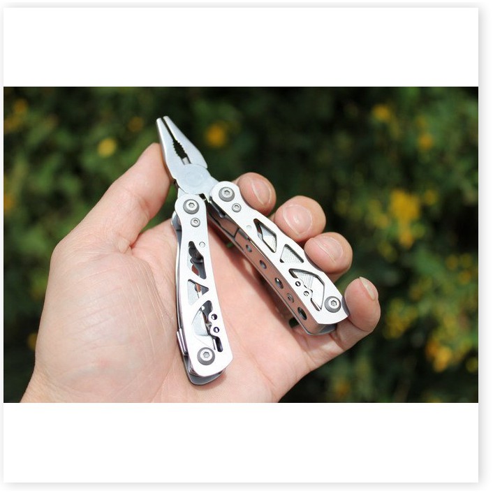 + Tuy nhỏ nhưng kìm có đầy đủ các tính năng thực thụ của multi tool như gắp, kẹp, giữ, uốn, cắt, bẻ kết hợp với các đầu công cụ dùi, mở nút chai, tua vít hai cạnh lớn, tua vít hai cạnh nhỏ, cưa gỗ, tua vít 4 cạnh, dao, dũa, đòn bẩy