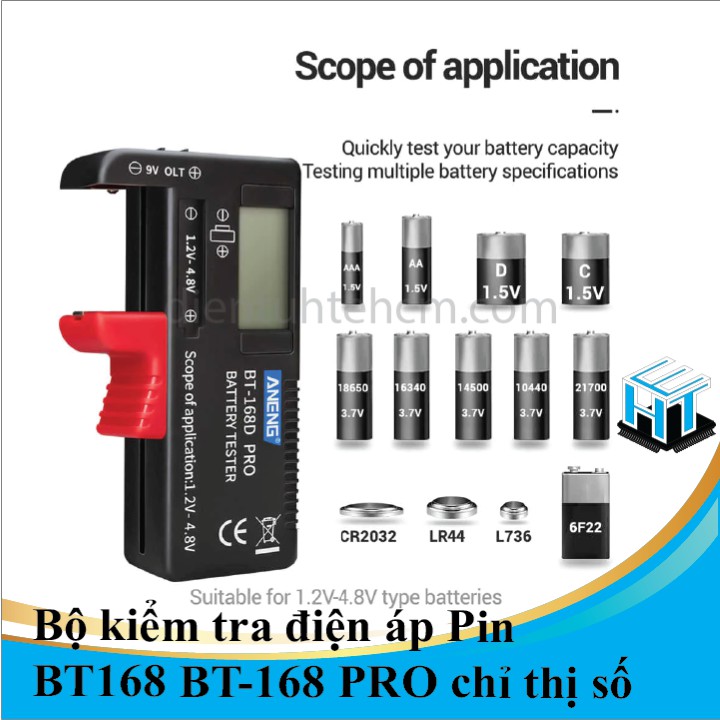 Bộ kiểm tra điện áp Pin BT168 BT-168 PRO chỉ thị sốBạn có quá nhiều pin đã qua sử dụng nhưng không biết được là nó còn đủ năng lượng để sử dụng không, nếu còn bỏ đi thì rất phí… Bộ kiểm tra BT-168 sẽ giúp bạn kiểm tra được Pin nào còn tốt.