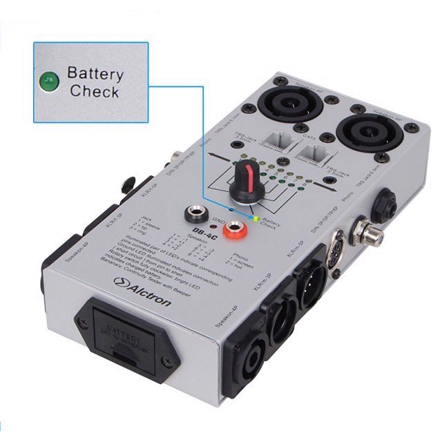Bộ kiểm tra tín hiệu cáp âm thanh Alctron DB-4C có thể kiểm tra tới 8 loại dây dẫn khác nhau, bao gồm cả dây loa Speakon NL8. Là một thiết bị cần thiết cho bất kỳ kỹ sư âm thanh hoặc nhạc sĩ nào.