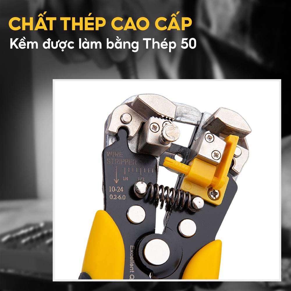 KỀM TUỐT DÂY ĐIỆN, DÂY CÁP, BẤM COS ĐA NĂNG DELIKềm tuốt dây điện, dây cáp, bấm Cos đa năng Deli là sản phẩm của thương hiệu nổi tiêng DELI, có chứng năng tuốt dậy điện, dây cáp, bấm cos dây cáp cực kì hữu dụng và giúp gia đình tiết kiệm rất nhiều thời gian trong hoạt động sửa chửa. Với chất liệu Thép 50 cùng tay cầm bằng nhựa PVC, kềm là một sản phẩm có chất lượng siêu bền và đảm bảo 1 đổi 1 trong 12 tháng từ DELI