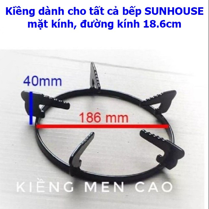 Kiềng này là kiềng thép cọng dày, uốn tròn, phù hợp với hầu hết các loại bếp ga Sunhouse mặt kính.
