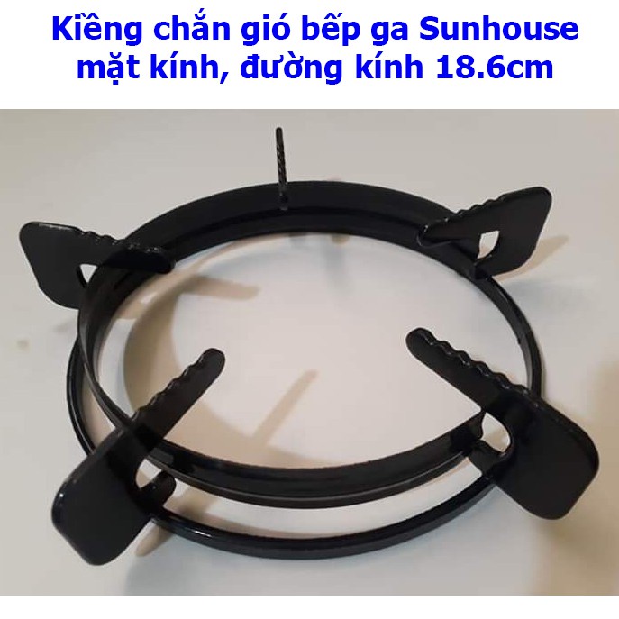 Kiềng Chắn Gió Bếp Ga Sunhouse Mặt Kính, Đường Kính 18.6cmKiềng chắn gió bếp ga Sunhouse này là sản phẩm đa năng, dùng cho tất cả các loại bếp ga Sunhouse dương mặt kính, vừa dùng làm kiềng, vừa có thể chắn gió chống tạt lửa khi có gió lớn. Kiềng được sản xuất từ thép cọng dày, có thể chịu được cân nặng lớn, chất lượng kiềng bền bỉ, thép của kiềng được tráng lớp men chống rỉ sét, chống ăn mòn do nấu ăn hằng ngày như mắm, muối, dầu mỡ...