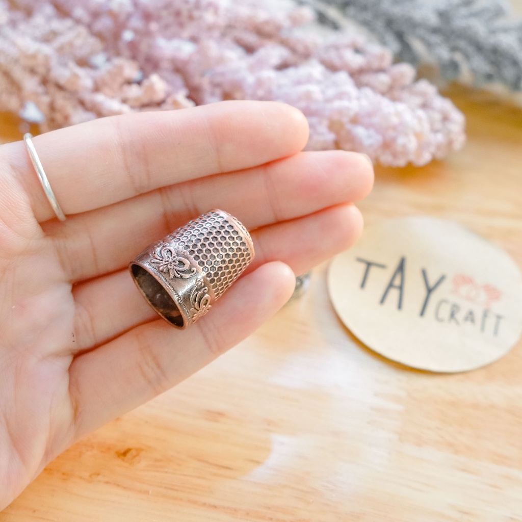 Đê tay là một dụng cụ đắc lực trong thêu thùa may vá, đặc biệt là khi may hoặc thêu tay trên chất liệu vải dày. Sản phẩm giúp bảo vệ đầu ngón tay không bị đau khi bạn đưa kim qua bề mặt vải. Sản phẩm đê tay có thiết kế kiểu cổ điển, được làm từ kim loại bền đẹp, dày dặn và chắc chắn, giúp cho việc may vá trở nên dễ dàng và an toàn hơn.[Ảnh sản phẩm tại TAY Craft là ảnh thực tế do chúng mình tự chụp, với hy vọng sẽ mang lại cho các bạn trải nghiệm mua sắm chân thật và tốt nhất]