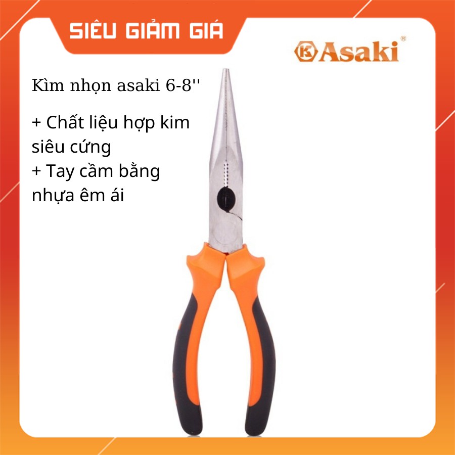 - Kìm mỏ nhọn ASAKI là sản phẩm được nhiều người sử dụng tin dùng bởi tính hữu ích và tiện lợi. Sản phẩm chính hãng của ASAKI sản xuất theo công nghệ hiện đại của Nhật đảm bảo bạn sẽ yên tâm hơn về chất lượng.