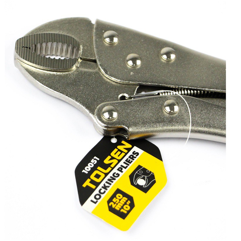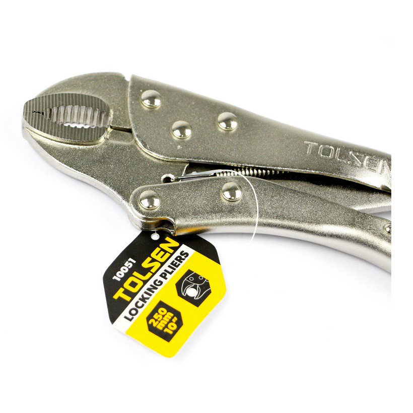 Kìm bấm chết hay còn gọi là kìm chết dùng để kẹp hoặc giữ chặt vật cần kẹp, kìm bấm 10 in Tolsen 10051 không dùng để vặn đai ốc hay xiết bu long, vì khi vặn ốc kìm chết sẽ làm hư đầu đai ốc. Cấu tạo của kìm chết là có tay cầm, ngàm kìm có nút điều chỉnh phù hợp với vật càn kẹp và chế độ khóa lại giúp cho việc kẹp, giữ chặt vật càn kẹp.