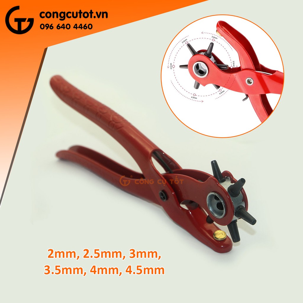 Kìm bấm thắt lưng dây da 6 lỗ tròn Φ2-4.5mm cán thép