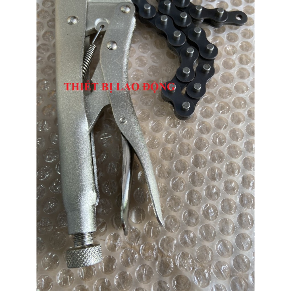 Kìm bấm dây xích là dụng cụ rất cần thiết cho người thợ chuyên sửa chữa đường ống nước bằng sắt. Dụng cụ này giúp người thợ mở và xiết các chi tiết hình tròn một cách nhanh chóng và dễ dàng.