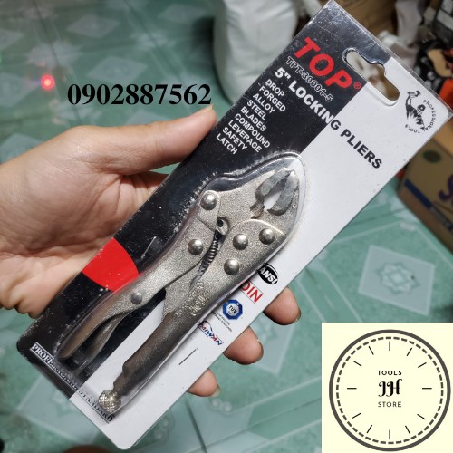 Kìm bấm chết xi trắng 5” dài 125mm hiệu TOP, sản xuất tại Đài Loan, được chế tạo bằng thép cao cấp và được xử lý nhiệt, đảm bảo độ cứng và độ bền cho kìm.