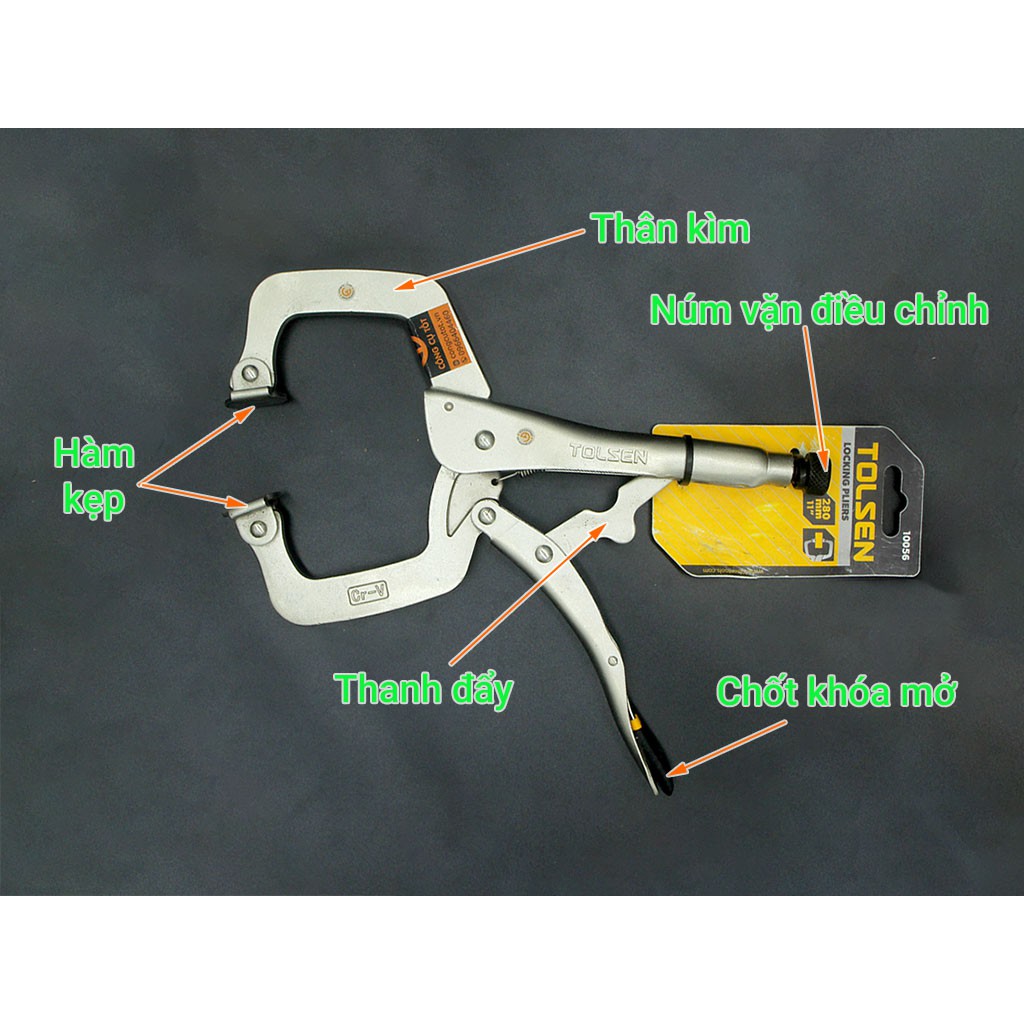 Kìm bấm chữ C 11'' Tolsen 10056 là trợ thử đắc lực cho thợ cơ khí, sửa chữa bởi tính năng, độ bền cũng như sự linh hoạt có thể sử dụng được trong nhiều công việc khác nhauĐặc điểm nổi bật: