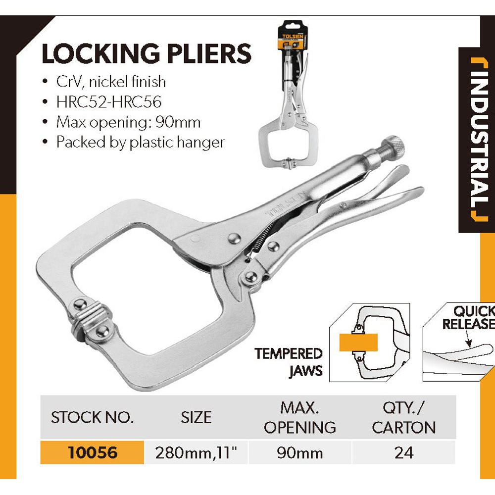 Kìm bấm chữ C 11'' Tolsen 10056 là trợ thử đắc lực cho thợ cơ khí, sửa chữa bởi tính năng, độ bền cũng như sự linh hoạt có thể sử dụng được trong nhiều công việc khác nhauĐặc điểm nổi bật: