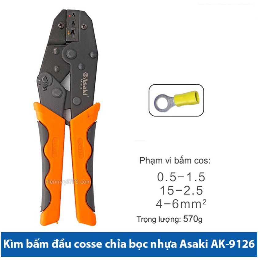 Giới thiệu Kìm bấm cos Asaki, kềm bấm cốt Asaki, bấm đầu cos Asaki
