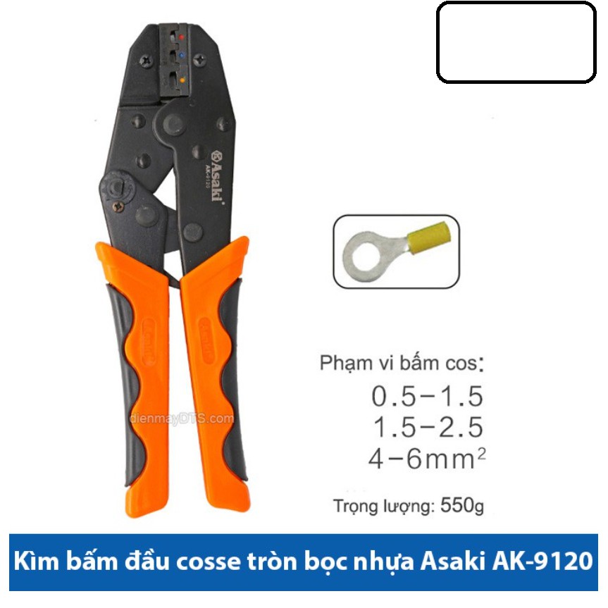 - Kìm bấm cos tròn bọc nhựa 0.5 -> 6.0mm2 Asaki AK-9120