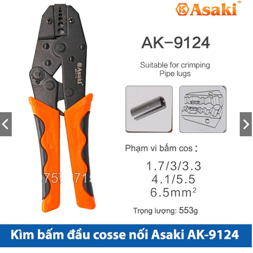 Nhà cửa & Đời sống > Dụng cụ & Thiết bị tiện ích > Dụng cụ > Kìm || Kìm bấm cos Asaki, kềm bấm cốt Asaki, bấm đầu cos AsakiCòn hàng