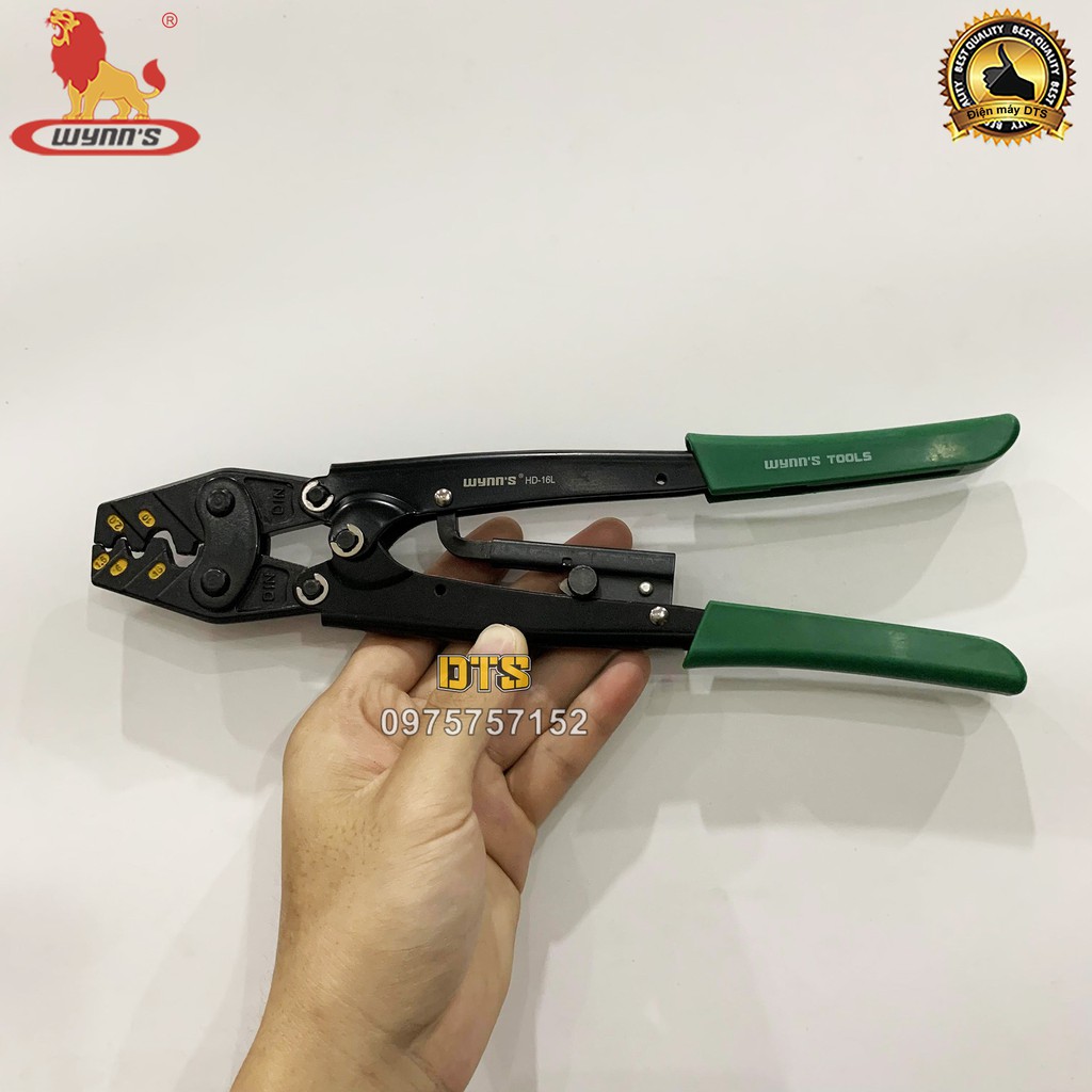- Kìm bấm đầu cos 16L (1.25 -> 16 mm2) hiệu WYNN'S với thiết kế nhỏ gọn, dễ sử dụng, thích hợp để mang theo trong túi đồ nghề của người thợ.