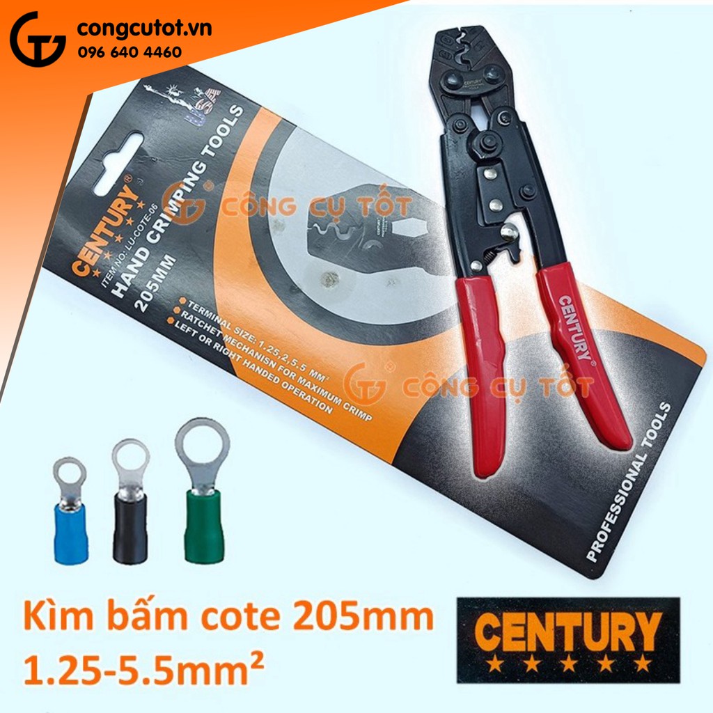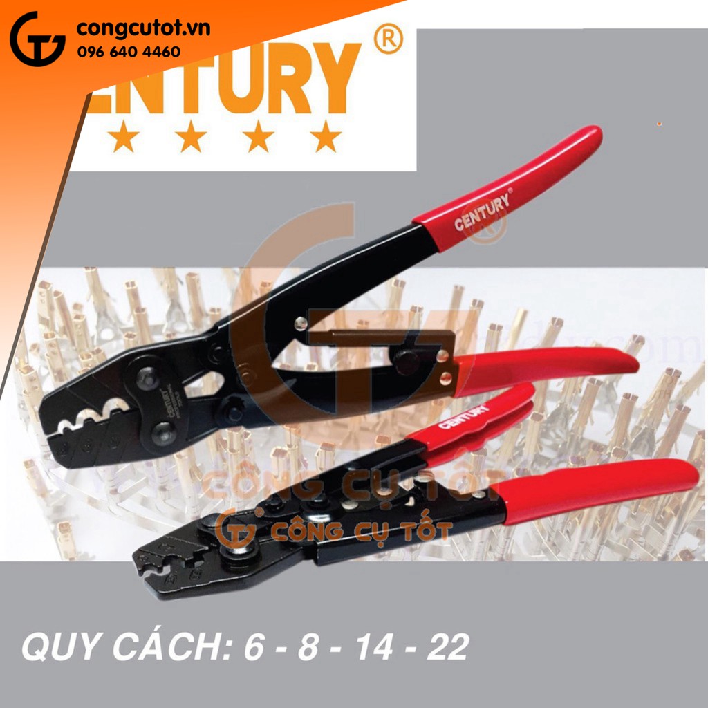 Ngoài ra shop có bán: Kìm bấm cote cộng lực 280mm Century số 8 cho dây 1.25 - 8 mm², lõi tối đa Φ3.2mm