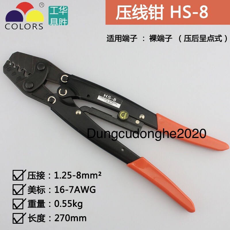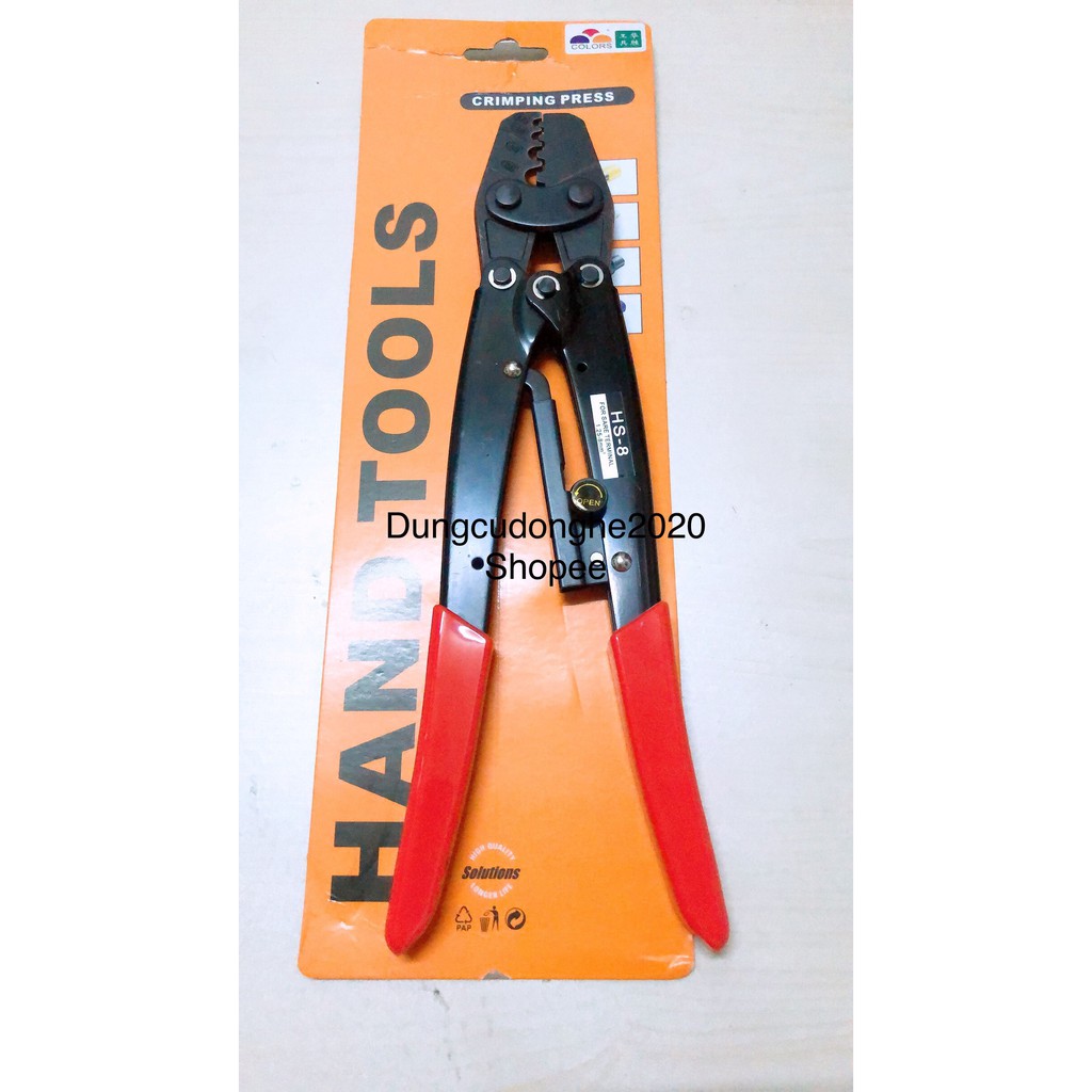 Dungcudonghe2020 chuyên phân phối các loại kìm bấm cos của hãng Fasen nổi tiếng sản xuất các loại dụng cụ bấm cos, là dụng cụ cầm tay chuyên dùng để bấm ép các đầu cos điện.- kềm bấm cos fasen hs-8 là dụng cụ bấm các đầu cos điện dạng chấm từ 1.25-10mm2 tương đương 16-7AWG.