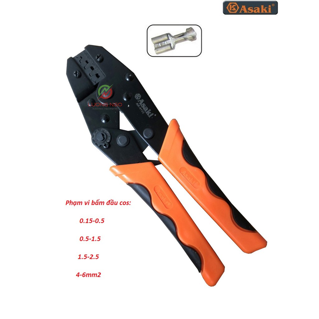 Kìm bấm cos ghim capa Asaki AK-9122 0.15 ~ 6mm2 - Kềm bấm cốt ghim capa (Kìm bấm đầu cote Asaki)