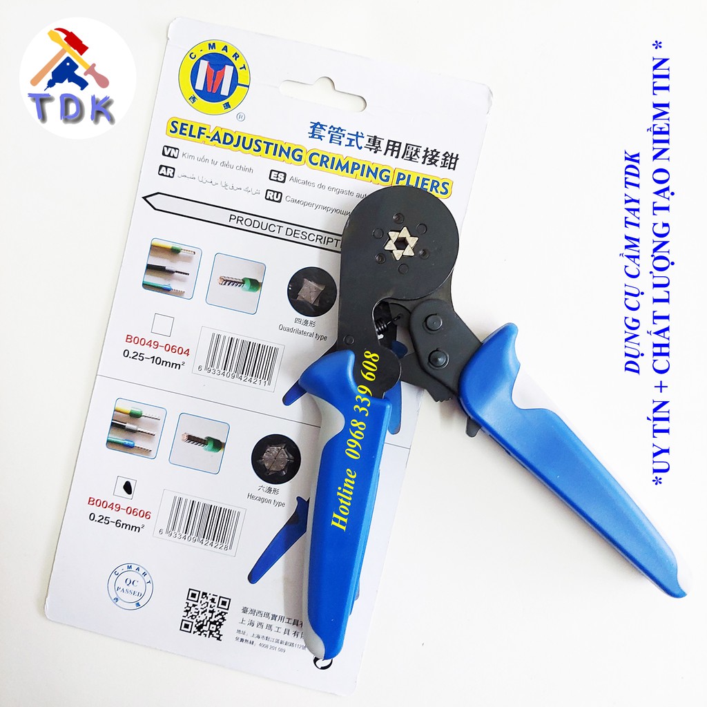 Kìm bấm cos lục giác, bấm cos pin tự điều chỉnh 0.25-6mm2 B0049-0606 CMART