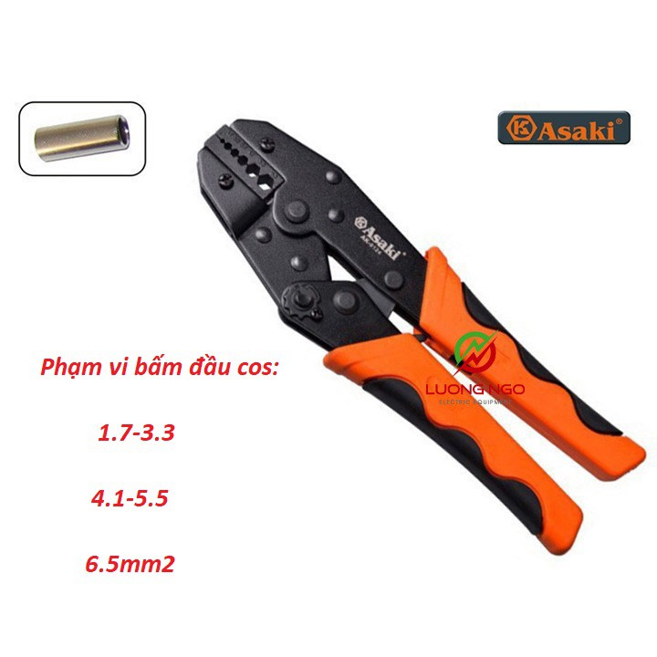 Kìm bấm cos nối Asaki AK-9124 1.7 ~ 6.5mm2 - Kềm bấm cốt nối (Kìm bấm đầu cote Asaki)