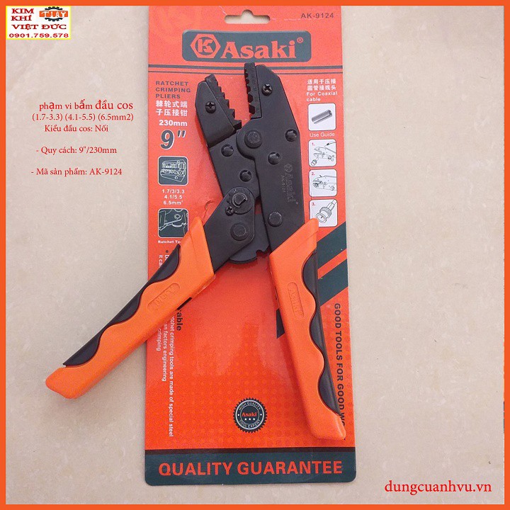 Giới thiệu Kìm bấm cos nối Asaki AK-9124 1.7 ~ 6.5mm2 - Kềm bấm cốt nối - Kìm bấm cos nối - Kìm bấm đầu cosse Asaki - AK-9124