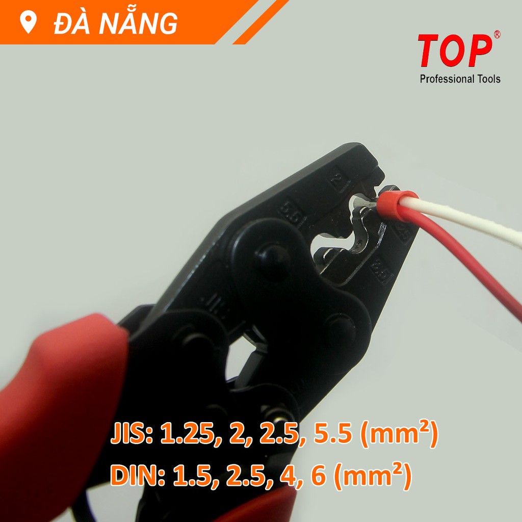 Kìm bấm cos trợ lực chỉnh cữ dây 1.5-6 mm² TOP có lẫy nhả cos dính
