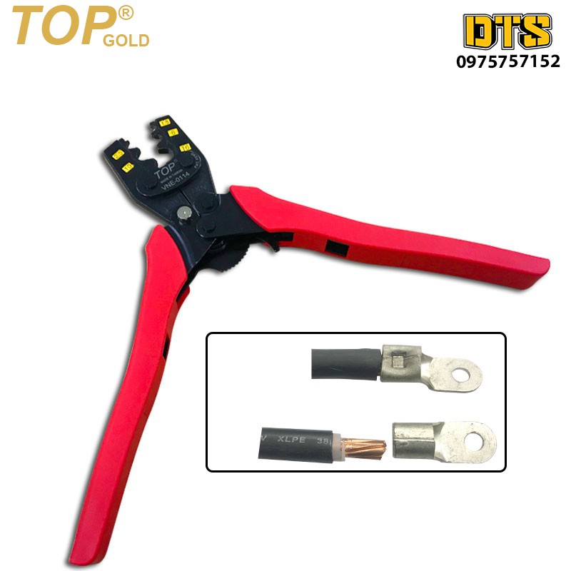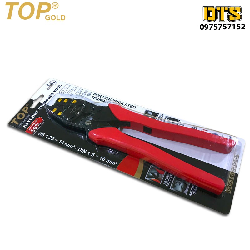 Kìm bấm cos trợ lực số 14 1.5 -> 16 mm2 TOP GOLD, tiết kiệm lực, độ chính xác cao, có nút điều độ rơ (Kềm bấm cốt 16L)