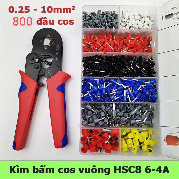 Kìm bấm cos vuông HSC8 6-4A tự điều chỉnh kèm 800 đầu cos đủ loại cos ống tròn cos pin