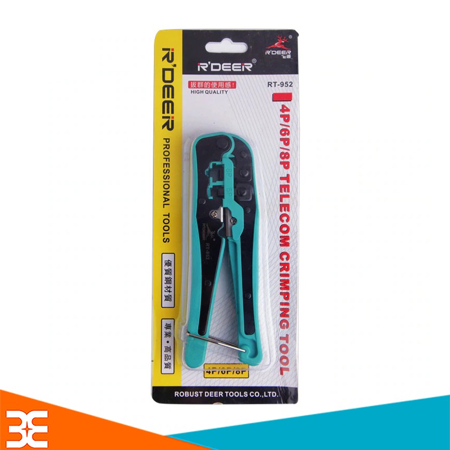 Kìm Bấm Dây Mạng R'DEER RT-952Kìm Bấm Dây Mạng R'DEER RT-952 được thiết kế với 3 đầu bấm 4p, 6p và 8p với lực bấm mạnh mẽ, tay cầm được làm bằng nhựa cao cấp giúp bạn thoải mái khi bấm ngay cả khi phải làm việc nhiều. Sản phẩm có chất lượng tốt, thiết kế tiên tiến và độc đáo, công nghệ sản xuất tiên tiến và hoàn thiện hệ thống đảm bảo chất lượng đã được rất nhiều bác thợ tin dùng.