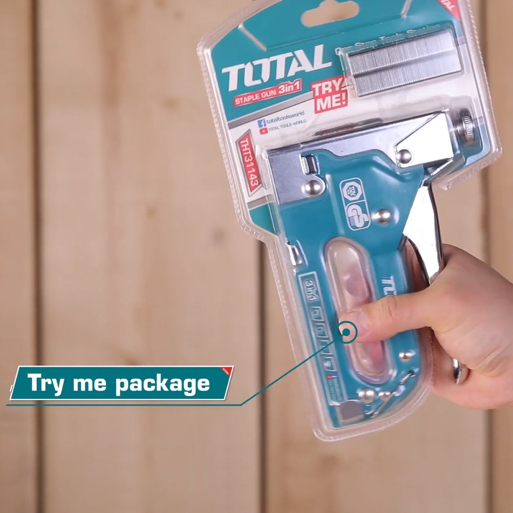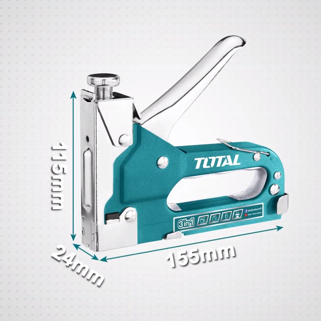 Nhà cửa & Đời sống > Dụng cụ & Thiết bị tiện ích > Dụng cụ > Kìm || Kìm bấm đinh ghim đa năng 3 trong 1 TOTAL THT31143 Kềm bấm ghim có điều chỉnh lực bắn, tặng kèm 600 mũi ghimCòn hàng