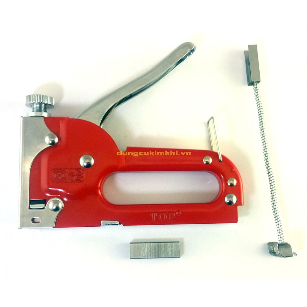 Công dụngĐể ghim chặt và căng một vật liệu như vải, giấy cát tông, tấm nhựa vào một bề mặt như gỗ nếu bạn dùng keo thì dễ bị bung khi bề mặt qúa căng. Nếu dùng đinh thì dễ bị rách và thao tác rất lâu. Và phương pháp hiệu quả nhất là dùng kìm bấm đinh ghim. Kìm bấm đinh ghim Top có điều chỉnh tăng lực sẽ hóa giải được các hạn chế về độ căng, chắc và thao tác chậm.