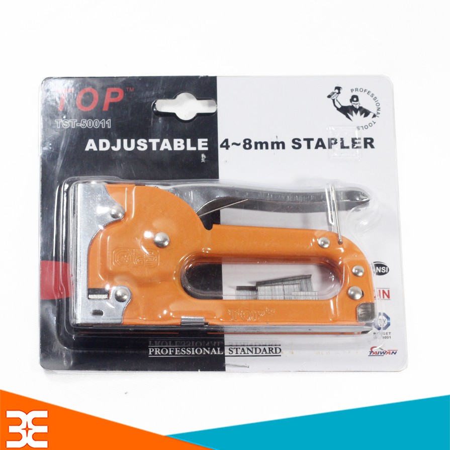 Kìm Bấm Ghim TOP TST-50011 ĐIều Chỉnh Tăng Lực - Made in TaiwanKìm Bấm Ghim Có Điều Chỉnh Tăng Lực TOP TST-50011 là dụng cụ bấm đinh ghim thương hiệu TOP, được sản xuất tại Đài Loan, các chi tiết được chế tạo rất tỉ mỉ, đảm bảo tính thẩm mỹ cao, và độ bền của sản phẩm. Kìm bấm ghim được tích hợp thêm nút vặn trên đầu, mục đích để tăng thêm lực bấm đinh vào sát và sâu hơn. Với thiết kế tiện dụng, Kìm bấm ghim có thể được sử dụng ở mọi hoàn cảnh, mọi ngành nghề khác nhau như: trang trí, nghề mộc, văn phòng phẩm…